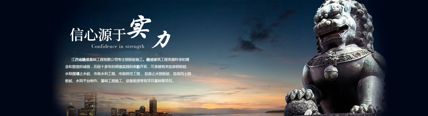 江西省贛盛基礎工程有限公司鋼板樁施工。贛 盛建筑工程憑借科學的理念和堅定的誠信,歷經十多年的傾身實踐和辛勤開拓,可承接有關拉森鋼板樁、水陸圍堰止水樁、市政水利工程、市政排污工程 、拉森止水鋼板樁、拉森擋土鋼板樁、水陸平臺制作、基礎工程施工、設備租賃等有項目基礎等項目。 ...